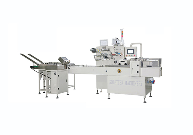 實現餅干聯線自動整理,并根據所設置的餅干片數完成自動點數、裝托盒或無托盒包裝。